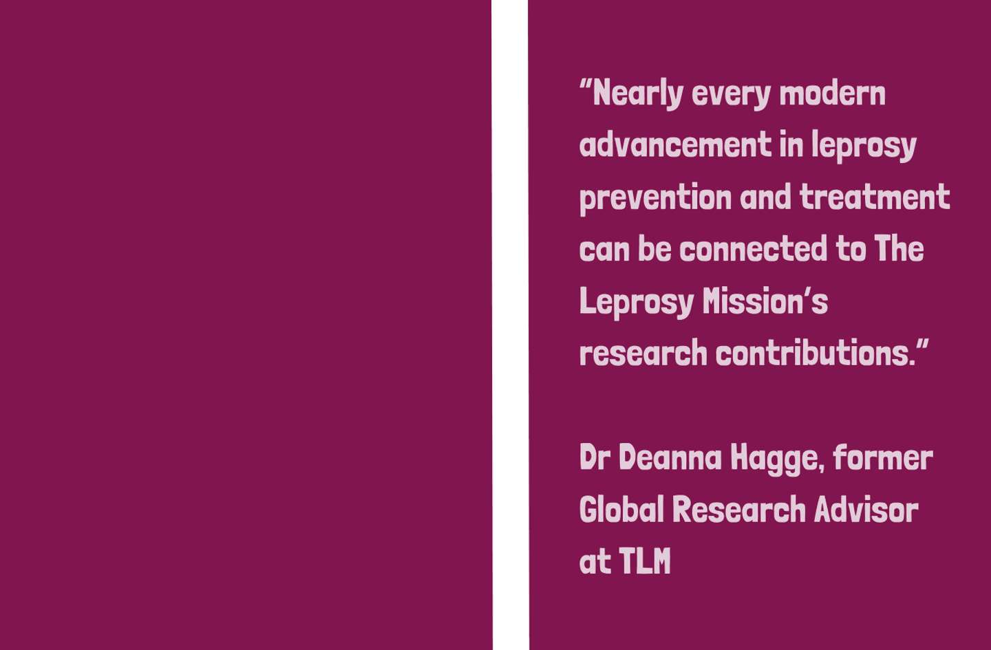 TLM has been involved in research for more than 70 years. Our contributions include the testing and development of MDT, the innovative surgical procedures pioneered by Dr Paul Brand, and improving the understanding and management of reactions and neuropathy.