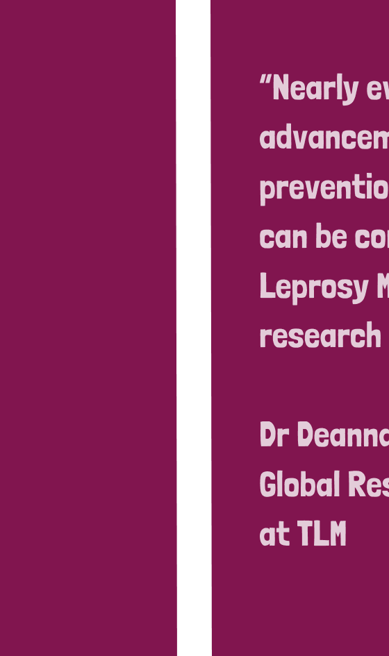 We undertake research through our research laboratories, at our hospitals, and through field-based primary research. Our Bangladesh field operation is one of the largest leprosy field research operations in the world, which was the key to unlocking PEP (post-exposure prophylaxis).